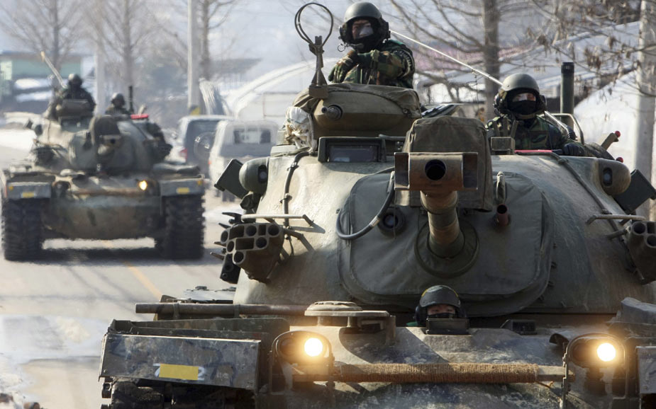 韓國陸軍部隊嚴寒中進行戰術演練