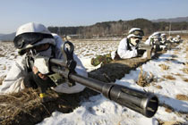 1月27日,韓國(guó)江原道,韓國(guó)陸軍部隊(duì)在嚴(yán)寒中進(jìn)行戰(zhàn)術(shù)訓(xùn)練。