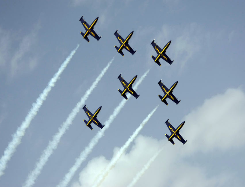1月27日,在阿聯(lián)酋艾因市國(guó)際機(jī)場(chǎng)舉行了“音樂伴奏飛行展演”。本次展演共有來自世界各地的23支飛行表演隊(duì)參加,觀眾可以一邊欣賞優(yōu)美的音樂一邊觀看精彩的特技飛行。
