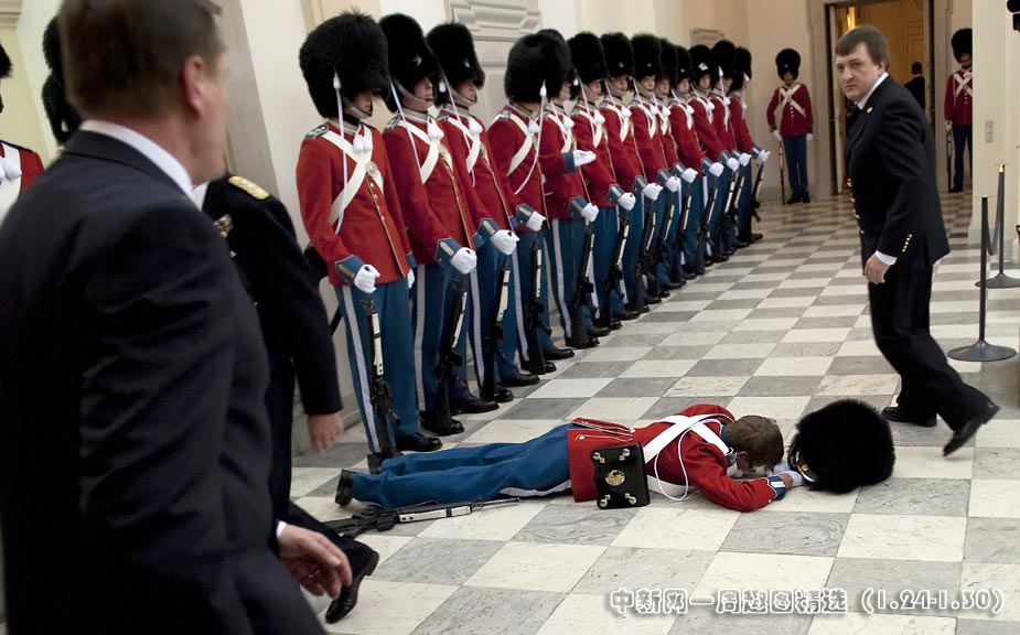 1月27日,丹麥女王在首都哥本哈根設(shè)宴款待議會(huì)議員,一名皇家衛(wèi)兵突然暈倒在地,不知是否站得太久餓暈了。圖片來(lái)源:中國(guó)新聞網(wǎng)>>點(diǎn)擊觀看詳細(xì)內(nèi)容