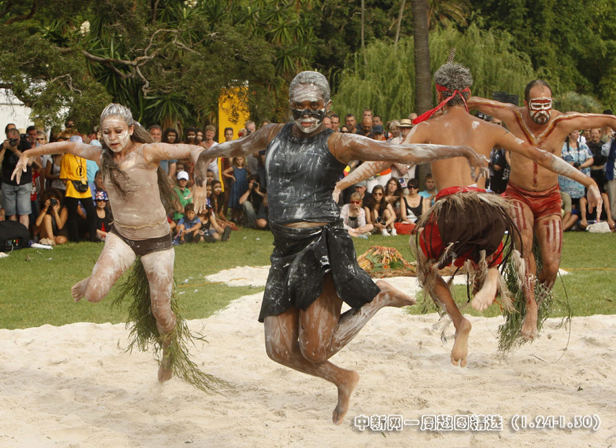 1月26日,澳大利亞土著居民在悉尼表演傳統舞蹈慶祝澳大利亞國慶日。圖片來源:中國新聞網>>點擊觀看詳細內容