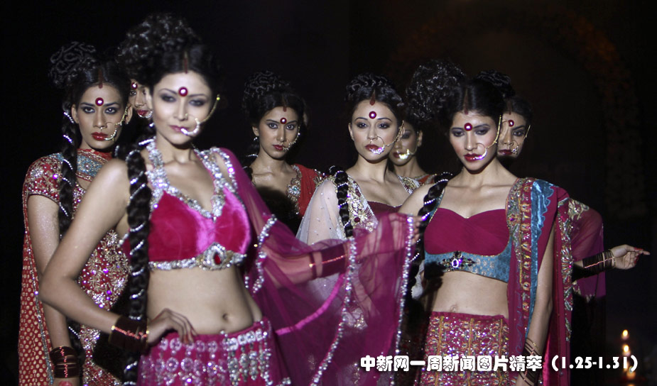 1月30日(周六),在印度班加羅爾時裝周上,眾多靚模閃亮登場。圖片來源:中國新聞網