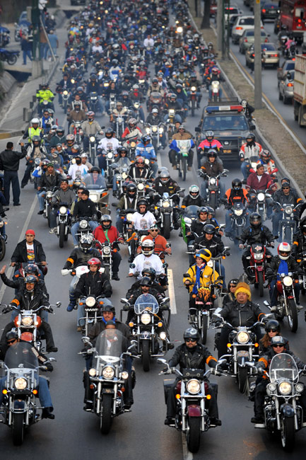 當(dāng)?shù)貢r(shí)間2月6日,在危地馬拉首都危地馬拉城,大約30000名摩托車手駕駛著機(jī)車在街頭游行。圖片來(lái)源:中國(guó)新聞網(wǎng)
