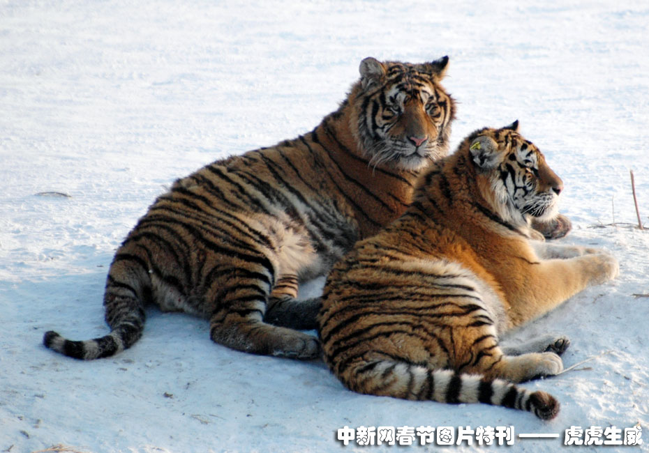 1月13日,黑龍江東北虎林園,老虎在雪地中嬉戲追逐。(王少華 張書儉 攝) 圖片來源:中國新聞網