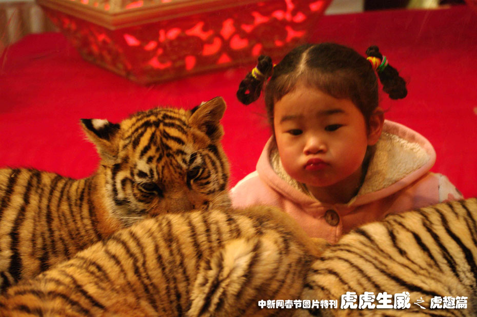 1月30日,虎年將至,重慶某商廈開展野生動物保護法宣傳,“請”來幾只活潑可愛的小老虎與市民近距離接觸,人見人愛。中新社發 金城 攝