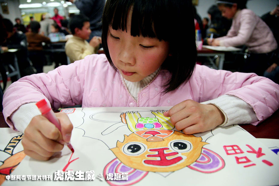 1月23日,“百童畫百虎”活動在南京鳳凰書城舉行,約100名4歲到14歲的小朋友現場切磋畫技,畫出自己心中最可愛的老虎模樣,迎接即將到來的虎年。中新社發 鐘山 攝