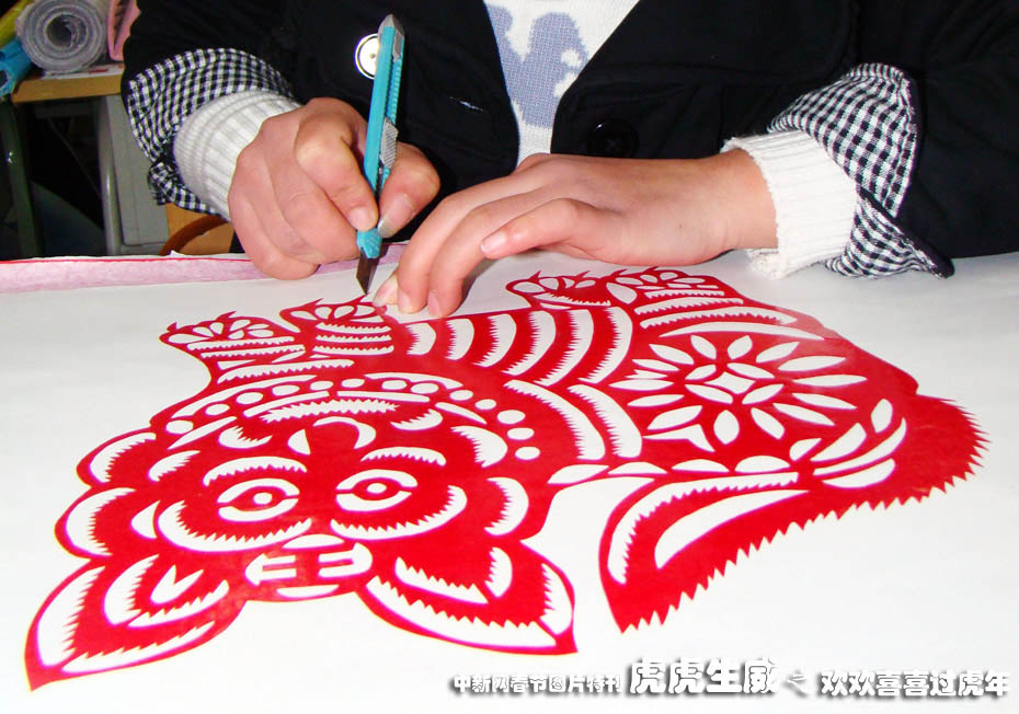 12月21日,重慶市云陽教師進修學院08級幼教班的學生在利用美術課“剪老虎”。中新社發 饒國君 攝