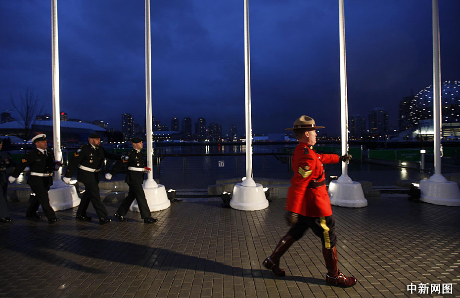 當?shù)貢r間2月10日,中國代表團在溫哥華冬奧會奧運村舉行升旗儀式。升旗儀式結束后,中國代表團團長劉鵬帶領代表團成員展開橫幅高聲向全體國人送上新春祝福。中新社記者 盛佳鵬 攝