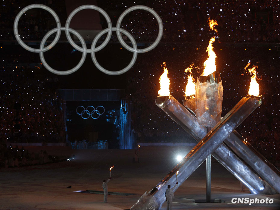 圖為溫哥華冬奧會主火炬在體育館內點燃。