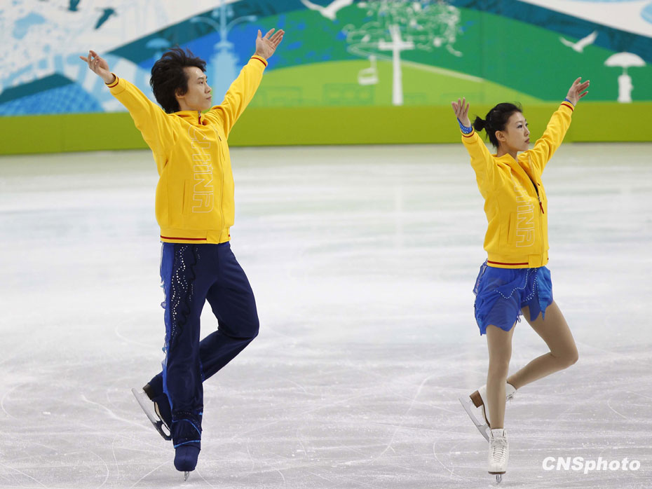 當地時間2月13日,中國花樣滑冰隊龐清/佟健、張丹/張昊在溫哥華太平洋體育館,利用最后的休息時間重復練習積極備戰即將到來的比賽。中新社記者 盛佳鵬 攝