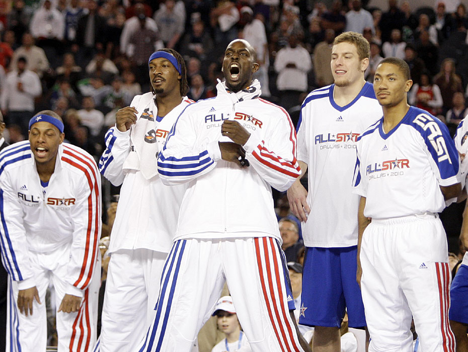 美國當地時間2月14日,2010NBA全明星周末,東部明星隊以141比139險勝西部明星隊。整場比賽猶如度假一般全無緊張氣氛。圖片來源:中國新聞網
