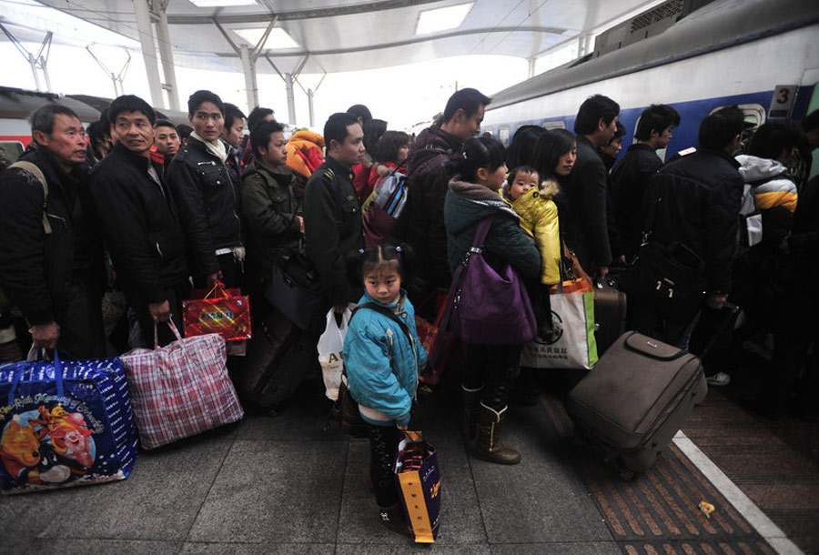 春節(jié)七天長(zhǎng)假接近過半,部分返鄉(xiāng)者提前返程,武漢鐵路部門迎來春節(jié)后的首個(gè)客流高峰。圖為武昌火車站。周超 攝