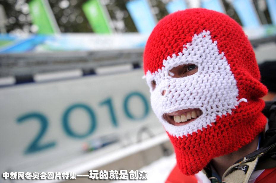 圖為無(wú)舵雪橇比賽場(chǎng)地一個(gè)打扮怪異的觀眾。圖片來(lái)源:中國(guó)新聞網(wǎng)