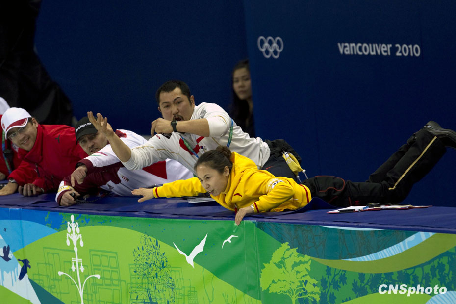 圖為中國隊主教練李琰(右一)在場邊為周洋加油。