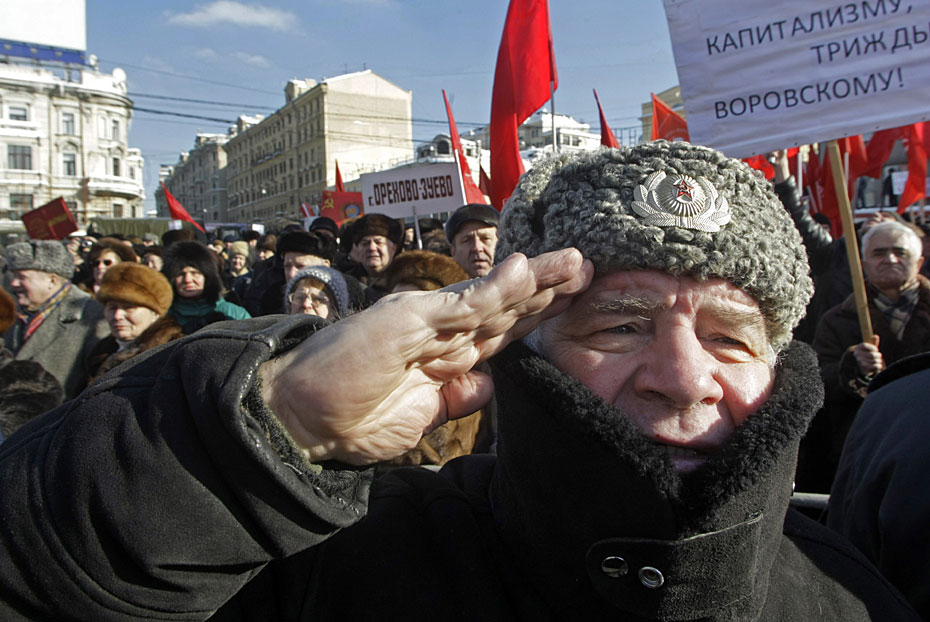 2月23日,俄羅斯莫斯科,示威者參加俄羅斯共產黨組織的集會,抗議軍隊改革。圖片來源:中國新聞網