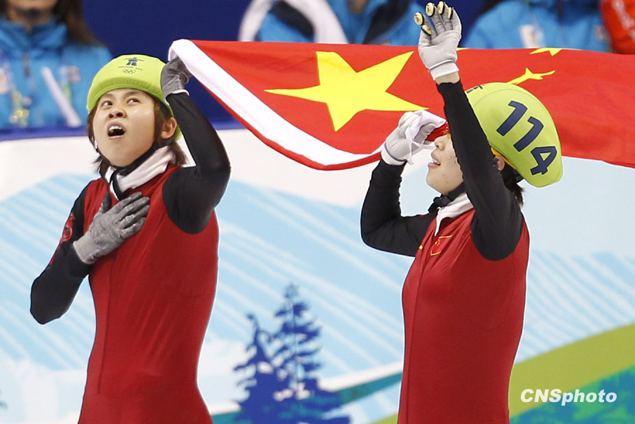 北京時(shí)間27日中午,中國選手王濛在2010年溫哥華冬奧會(huì)短道速滑女子1000米的決賽中摘得金牌。圖片來源:中國新聞網(wǎng)