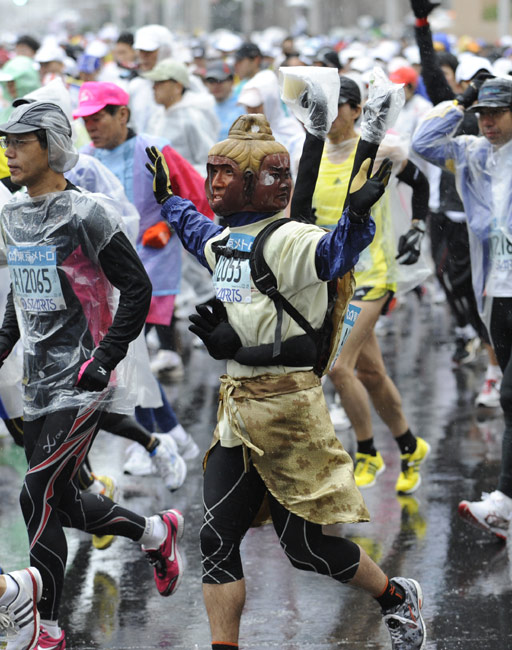 2月28日,日本東京馬拉松賽舉行,超過30000名愛好者參加了此次馬拉松賽。很多參賽者的怪異服裝成為了賽場上的一道風景。