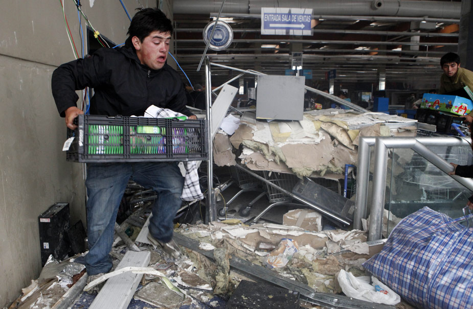 2月27日凌晨,智利發(fā)生了8.8級(jí)強(qiáng)烈地震。28日,智利康塞普西翁市,數(shù)百人對(duì)當(dāng)?shù)貎杉覀}(cāng)庫(kù)進(jìn)行洗劫。康塞普西翁市市長(zhǎng)表示,目前情況非常復(fù)雜,“開始失控”,災(zāi)民非常脆弱。