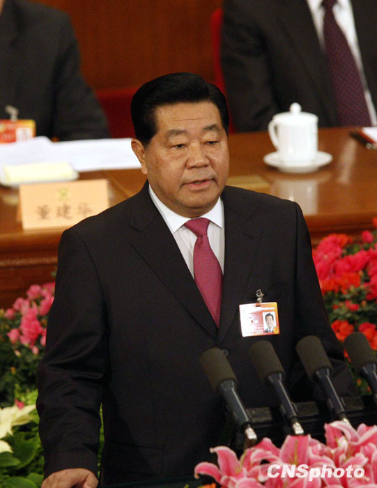 3月3日,全國政協十一屆三次會議在北京人民大會堂開幕,全國政協主席賈慶林作全國政協常委會工作報告。中新社發 張宇 攝