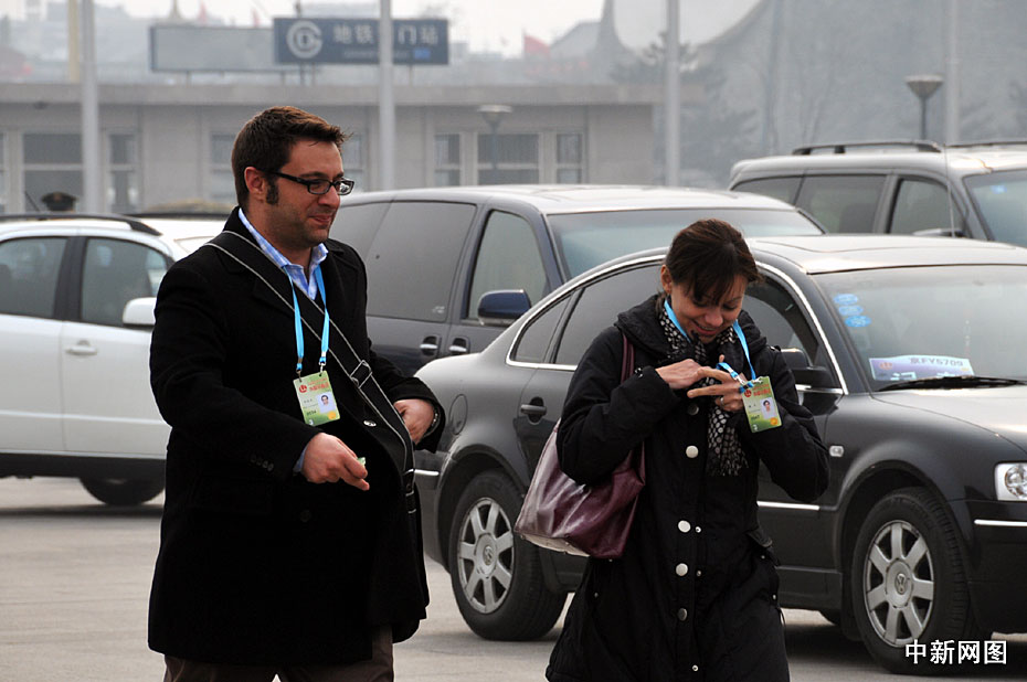 3月3日下午,全國政協十一屆三次會議在北京開幕。外國記者抵達人民大會堂對中國“兩會”進行報道。中新網記者 吳歆 攝