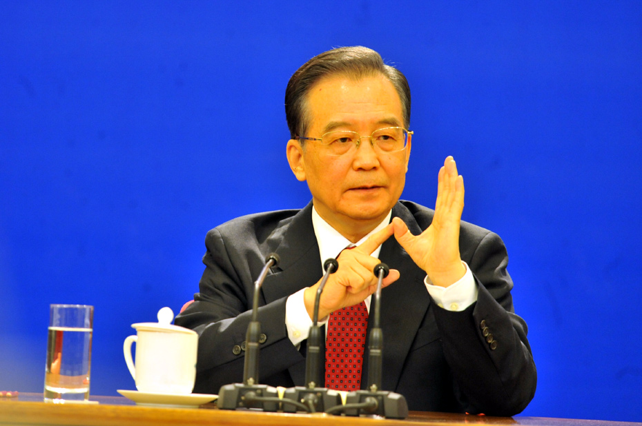 3月14日上午,國務院總理溫家寶在人民大會堂三樓金色大廳與采訪十一屆全國人大三次會議的中外記者見面并回答記者提出的問題。中新社記者 賈國榮 攝 圖片來源:中國新聞網