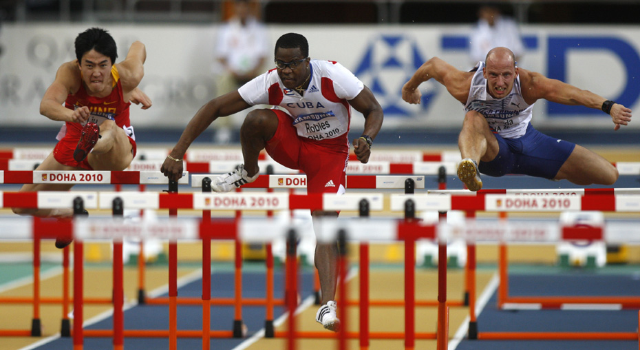 在14日晚間結(jié)束的多哈室內(nèi)田徑世錦賽60米欄決賽中,劉翔僅僅以7秒65的成績(jī)獲得第七名。古巴選手羅伯斯則以7秒34成績(jī)奪得冠軍并打破室內(nèi)世錦賽賽會(huì)紀(jì)錄。圖片來源:中國(guó)新聞網(wǎng)