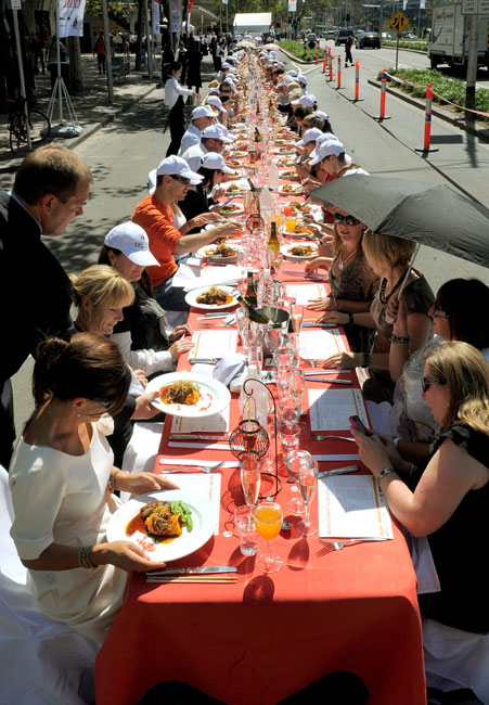 近日,澳大利亞墨爾本,人們在號稱“世界上最長的午餐”活動中享受美味佳肴。圖片來源:中國新聞網(wǎng)