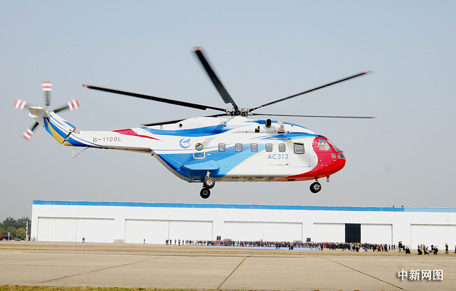 3月18日上午,中國首架大型民用直升機AC313在江西省景德鎮市成功首飛,標志著中國和美、歐、俄一樣具備了自主研制大型直升機的能力。圖片來源:中國新聞網