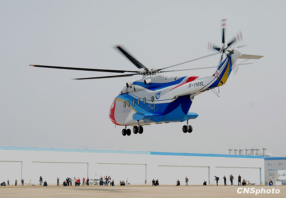 3月18日上午,中國首架大型民用直升機AC313在江西省景德鎮市成功首飛,標志著中國和美、歐、俄一樣具備了自主研制大型直升機的能力。