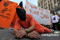 15日(周一),在紐約現代藝術館舉行的展覽“瑪麗娜阿布拉莫維奇:藝術家在場”上,一名女子展示作品“與骷髏一起裸體”。
