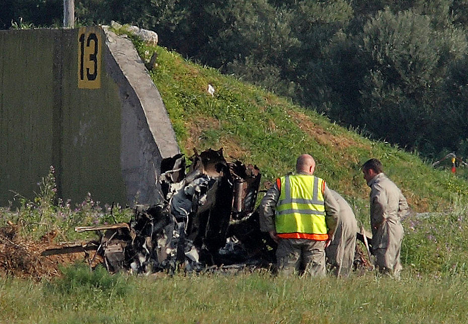 3月23日,英國(guó)“紅箭”特技飛行隊(duì)的兩架飛機(jī)在希臘克里特島進(jìn)行訓(xùn)練時(shí)不慎相撞,所幸駕駛飛機(jī)的兩名飛行員成功跳傘,僅受輕傷。圖片來(lái)源:中國(guó)新聞網(wǎng)
