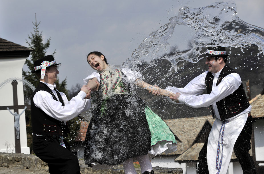3月26日,在匈牙利首都布達佩斯以東被譽為世界文化遺產的霍洛克村,當地居民以向姑娘身上潑水的傳統儀式慶祝復活節。此項古老習俗起源于公元2世紀。