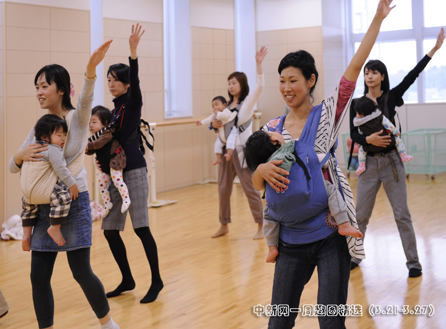 3月24日,在日本橫濱市的一堂母嬰桑巴課上,媽媽們帶著自己的寶寶一起參加舞蹈訓(xùn)練。 凡是孩子年齡在三個月到兩歲之間的母親都可以到這里參加母嬰舞蹈課,課程包括桑巴、華爾茲、布魯斯等。圖片來源:中國新聞網(wǎng)>>點(diǎn)擊觀看詳細(xì)內(nèi)容