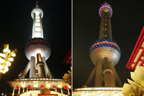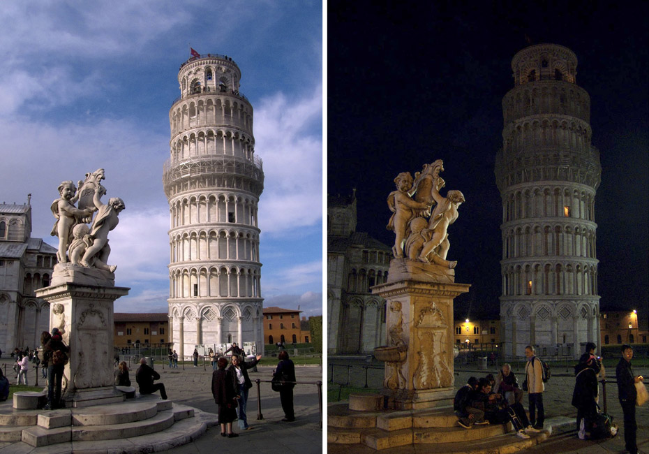 由世界自然基金會發(fā)起的“地球一小時”環(huán)保活動27日20點30分按照時區(qū)依次在全球數(shù)千個城市展開。圖為意大利比薩斜塔在熄燈前和熄燈后的景色。