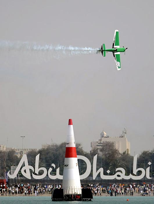 近日,紅牛飛行系列賽世界錦標賽預選賽在阿拉伯聯合酋長國阿布扎比舉行。參加比賽飛行員不但要有高速的駕駛技術,還要有勇往直前的膽量。圖片來源:中國新聞網
