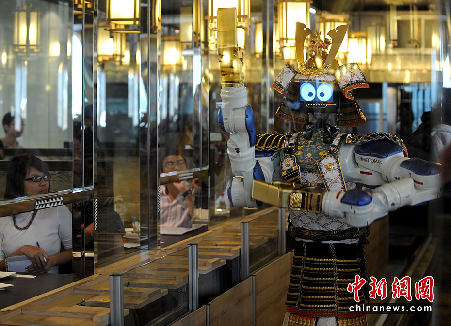 這家日本餐館是泰國(guó)首家擁有機(jī)器人服務(wù)員的餐館,顧客可以通過(guò)電子觸摸屏進(jìn)行點(diǎn)菜,機(jī)器人則會(huì)帶來(lái)相應(yīng)的服務(wù)。機(jī)器人服務(wù)員能有節(jié)奏地跳舞,還可以自動(dòng)到餐桌為客人收走空盤(pán)子。
