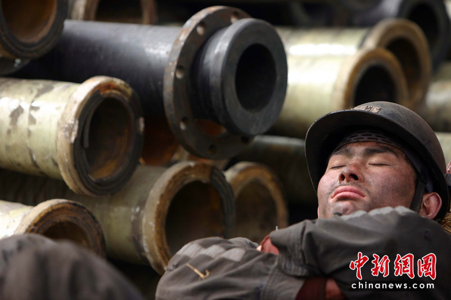 3月30日,“3·28”山西王家嶺煤礦透水事故搶險工作仍在進行。礦山救護隊與礦工們為加快排水進度,夜以繼日地工作,不斷增添新的排水管道以便盡快救出井下被困礦工。圖為疲憊的救援人員正在小憩。中新社發 張云 攝