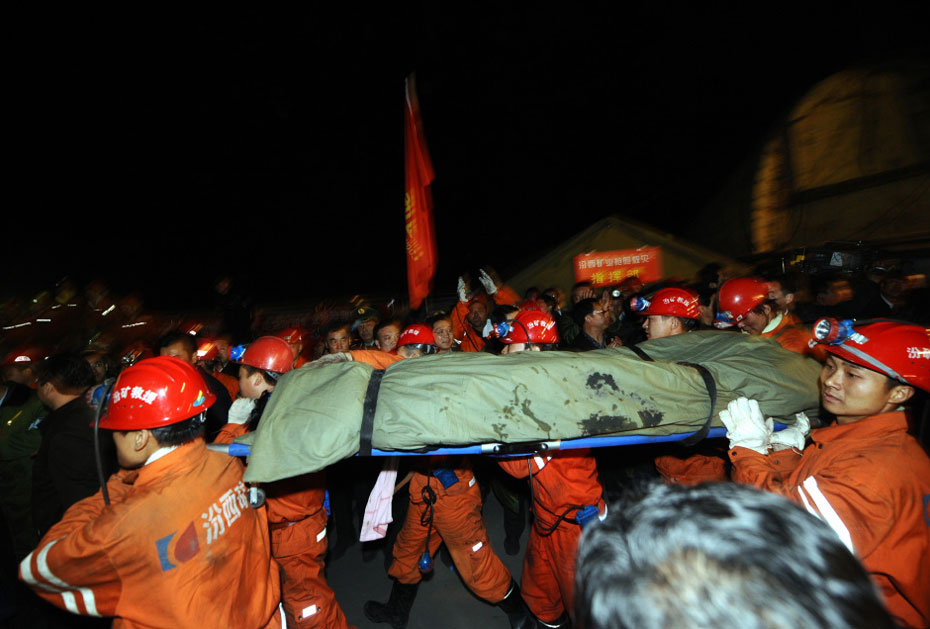 3月28日下午,華晉焦煤有限責任公司王家嶺煤礦發生透水事故,153人被困井下。4月5日凌晨隨著首名被困人員成功升井,經過了190個小時的緊張營救創造了生命奇跡。圖片來源:中國新聞網