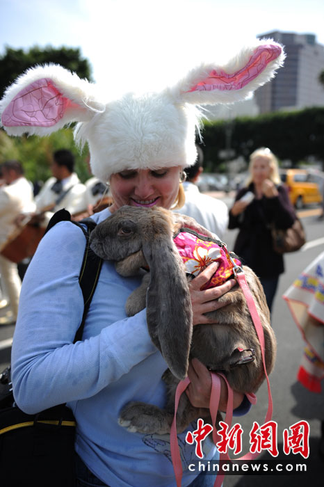 當?shù)貢r間4月4日,美國洛杉磯人們在歡慶復活節(jié)的同時,也為他們的寵物舉行了祝福儀式。這項祝福儀式每年舉行一次。圖片來源:中國新聞網(wǎng)