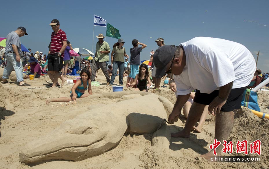 4月5日,以色列國家公園和自然保護區管理局在北城鎮Beit Yanai舉行了一年一度的沙雕大賽。世界眾多國家的沙雕愛好者前來參賽。圖片來源:中國新聞網