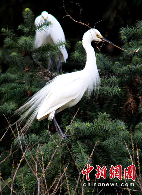 4月9日,一對白鷺在象山森林公園歡躍飛舞,譜寫一曲春日戀歌。四月,正值芳草萋萋,萬物生機勃勃。萬余只白鷺陸續(xù)抵達江西南昌象山森林公園棲息,繁衍后代,成為鄱陽湖濕地的一大獨特景觀, 吸引眾多攝影愛好者前來拍攝和觀賞。孫永勝 胡國林 攝