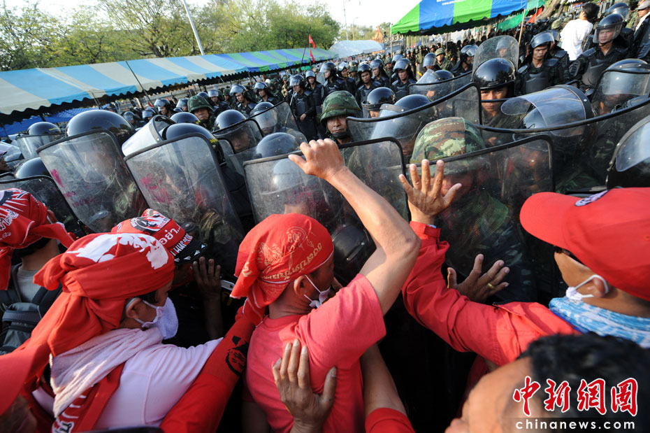 4月10日,泰國軍隊在首都曼谷對支持前總理他信的“紅衫軍”進行武力驅散,雙方爆發嚴重沖突,目前已造成18人死亡,數百人受傷。圖片來源:中國新聞網