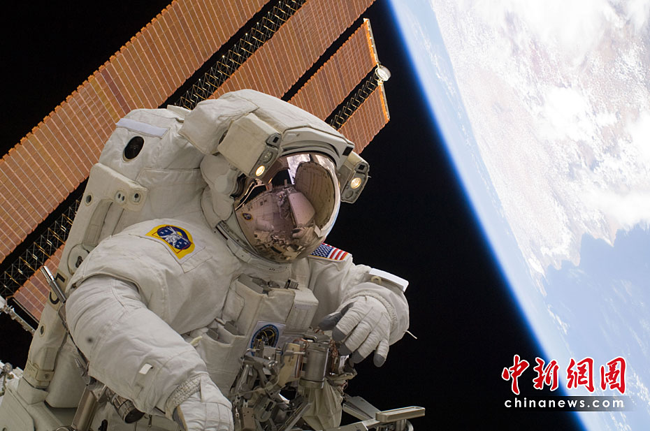 4月13日,美國航天局發布消息說,發現號航天飛機兩名宇航員完成了“發現號”本次升空以來的第三次,也是最后一次太空行走。圖片來源:中國新聞網
