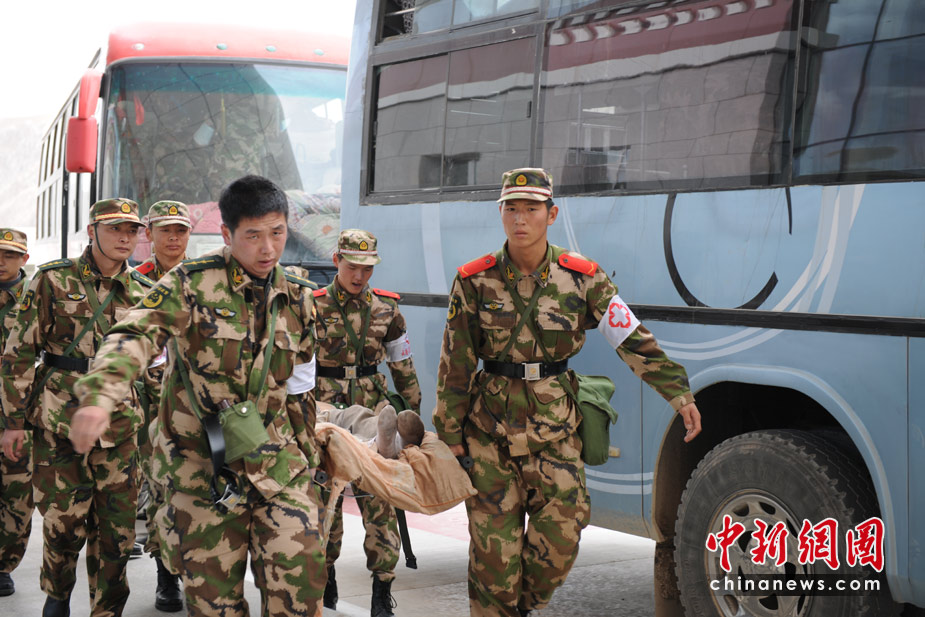 4月15日,玉樹地震傷員正源源不斷的從玉樹機場乘飛機,被運往成都等地救治。 中新社/中新網記者 符永康 攝