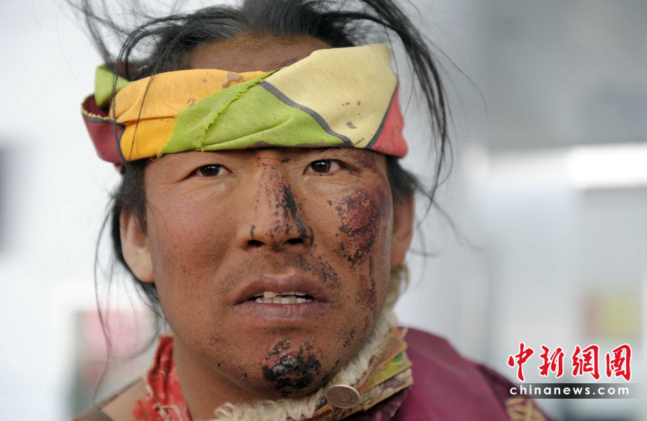 4月15日下午,云南邊防總隊醫療救援隊剛下飛機立即投入傷員轉移工作,官兵們在玉樹機場從救護車上抬下地震傷員,進行轉移安置和治療。中新社發 陳文 攝