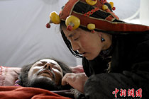 4月16日上午,廣東邊防總隊抗震救災(zāi)醫(yī)療隊在青海玉樹州結(jié)古鎮(zhèn)民族師范學院廣場設(shè)立救治點,當日救助地震災(zāi)區(qū)傷員200多名。中新社發(fā) 陳森陽 攝