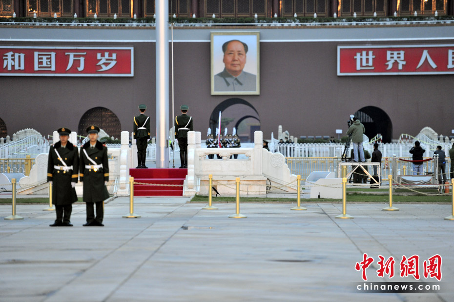 升旗儀式在清晨5:30左右進行,國旗升上旗桿頂部后,再向下降至半旗。