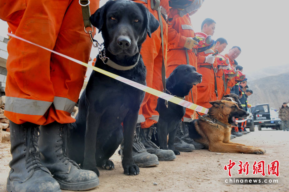 4月21日10時,中國國家救援隊在青海玉樹地震災區搜尋廢墟上默哀,深切哀悼地震遇難同胞。中新社發 賈國榮 攝