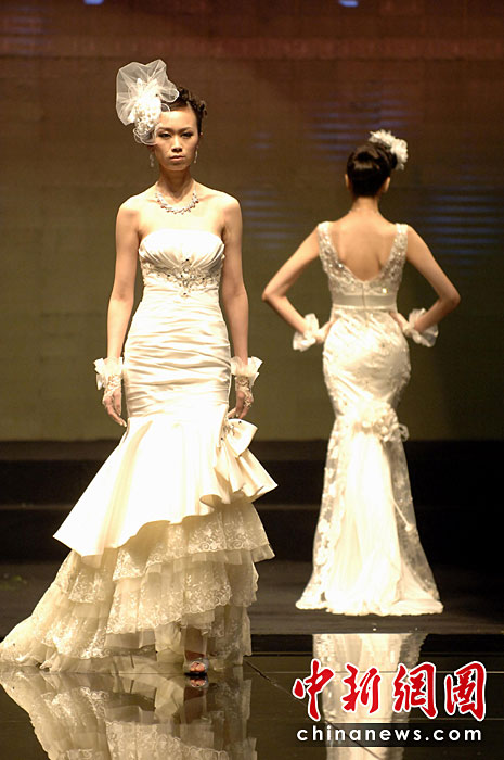 4月20日晚,臺灣著名設計師蔡美月最新婚紗秀在福建石獅上演。當日,首屆海西國際時裝周在福建石獅閉幕,本屆時裝周吸引了來自海峽兩岸的紡織服裝界企業家和知名服裝設計師。期間舉辦了12場時裝品牌和設計師作品動態發布會,品牌服裝、童裝、面料、輔料、流行色的流行趨勢專場發布會。王東明 攝