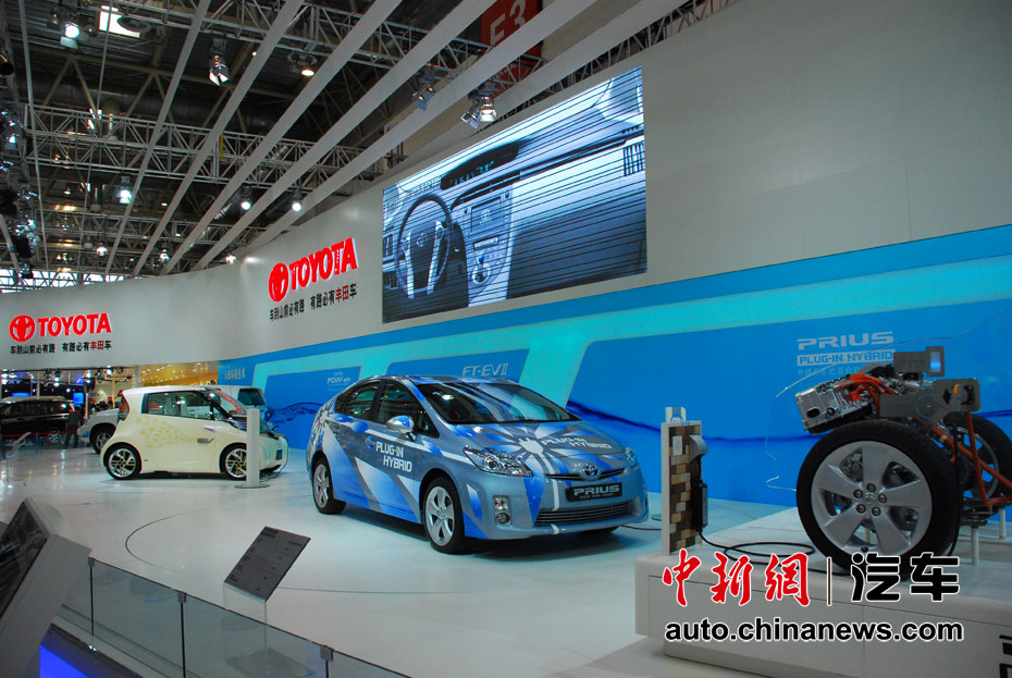第十一屆北京國際車展23日開幕,在本屆以“暢想綠色未來”為主題的車展上,新能源車成為最大亮點。圖為豐田普銳斯混合動力車 王槊 攝